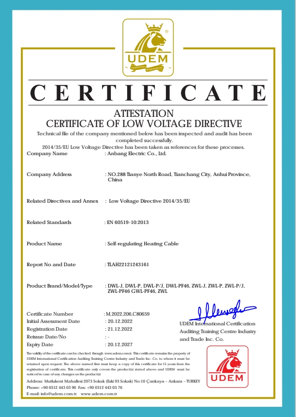 安邦電氣股份有限公司,總部位于北京市長(zhǎng)安街,成立于2004年,注冊(cè)資金10088萬(wàn)。安徽生產(chǎn)基地占地面積63000平方米,擁有66套各類(lèi)生產(chǎn)線,其中進(jìn)口生產(chǎn)線6套。國(guó)家高新技術(shù)型企業(yè),滁州市市長(zhǎng)質(zhì)量獎(jiǎng)企業(yè),專(zhuān)精特新“小巨人”企業(yè),擁有國(guó)家知識(shí)產(chǎn)權(quán)局授權(quán)的45項(xiàng)專(zhuān)利,其中發(fā)明專(zhuān)利28項(xiàng) , 主筆《太陽(yáng)能熱利用自限溫電熱帶安裝規(guī)范》行業(yè)標(biāo)準(zhǔn),參編《自限溫電伴熱帶》國(guó)家標(biāo)準(zhǔn)、《工業(yè)和商業(yè)用電阻式伴熱系統(tǒng)》國(guó)家標(biāo)準(zhǔn)、《太陽(yáng)能熱利用自限溫電熱帶》行業(yè)標(biāo)準(zhǔn)、《爆炸性環(huán)境 電阻式伴熱器》國(guó)家標(biāo)準(zhǔn)等7項(xiàng)國(guó)家標(biāo)準(zhǔn)。企業(yè)通過(guò)UL認(rèn)證,國(guó)家強(qiáng)制性 CCC產(chǎn)品認(rèn)證,ISO9001質(zhì)量管理體系認(rèn)證,ISO14001環(huán)境管理體系認(rèn)證,ISO45001職業(yè)健康安全管理體系認(rèn)證,Q/SHS0001.1健康、安全與環(huán)境管理體系認(rèn)證,歐盟防爆ATEX認(rèn)證,歐盟CE認(rèn)證,RoHS認(rèn)證,俄羅斯海關(guān)聯(lián)盟認(rèn)證,國(guó)家防爆電氣CCC證書(shū)。產(chǎn)品系列:集膚伴熱系統(tǒng)、電伴熱系統(tǒng)、電加熱器、電地暖系統(tǒng)、集儀器儀表、電線電纜、高低壓配電柜(箱)、電纜橋架、閥門(mén)管件等等設(shè)計(jì)、制造、銷(xiāo)售。產(chǎn)品應(yīng)用于航天航空、軍工、石油、石化、天然氣、機(jī)場(chǎng)、化工、鋼鐵、隧道、消防、養(yǎng)殖、融雪化冰、室內(nèi)供暖、國(guó)家電網(wǎng)及眾多電廠等等國(guó)家重點(diǎn)工程。出口美國(guó)、英國(guó)、德國(guó)、俄羅斯、韓國(guó)、日本、哈薩克斯坦、烏克蘭、伊朗等眾多國(guó)家。